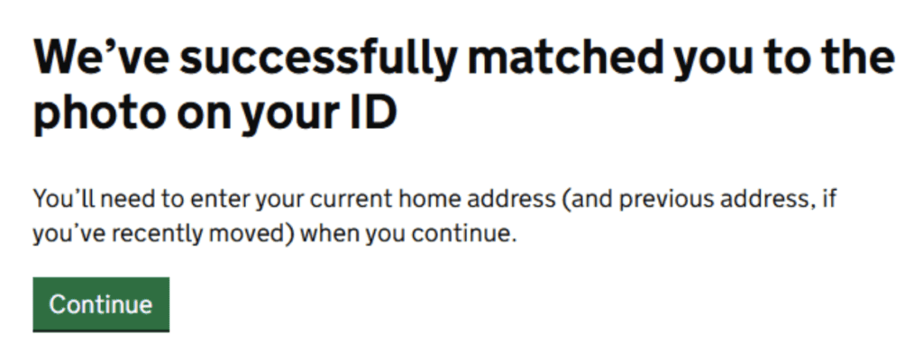 • Confirm you want to continue (the instructions which follow are for a driving licence; a resident card or passport option may vary slightly)